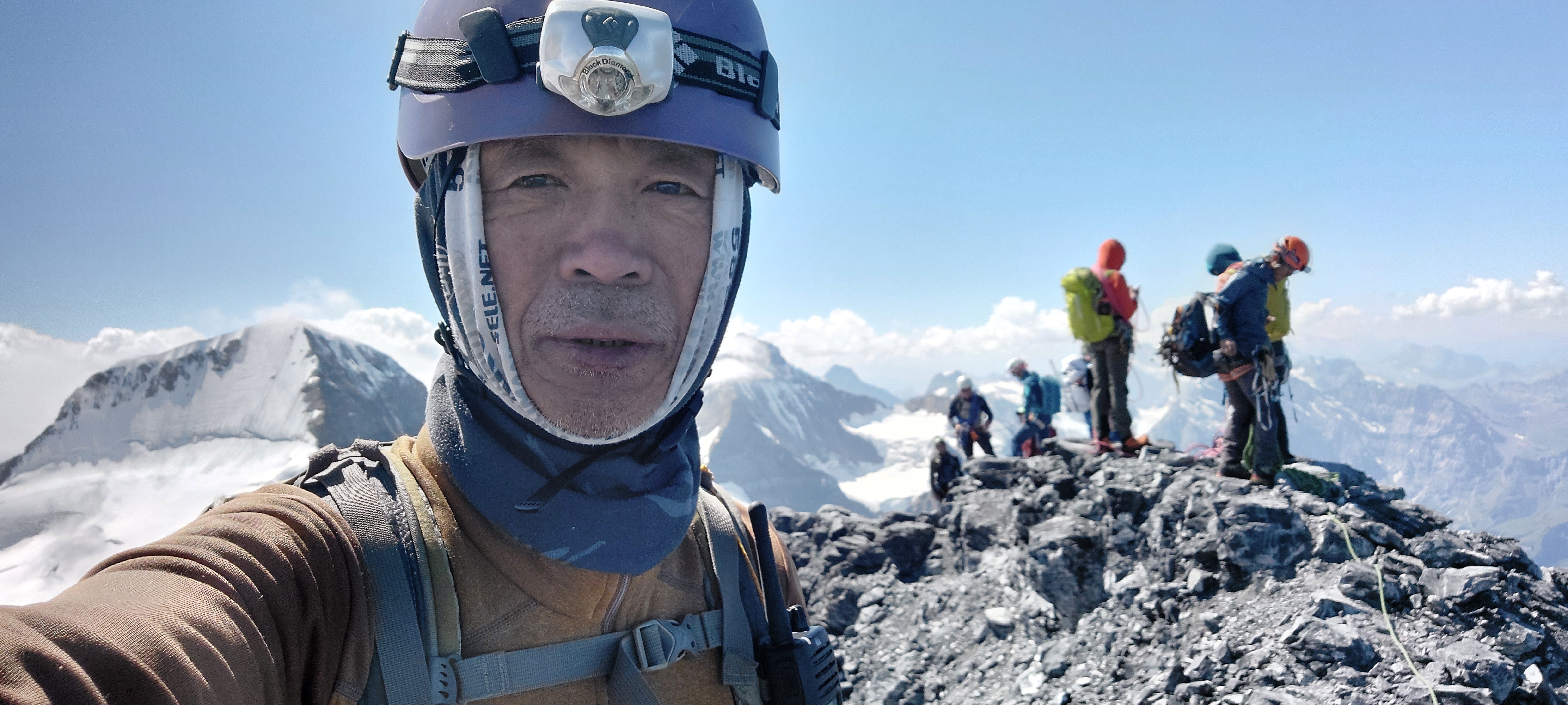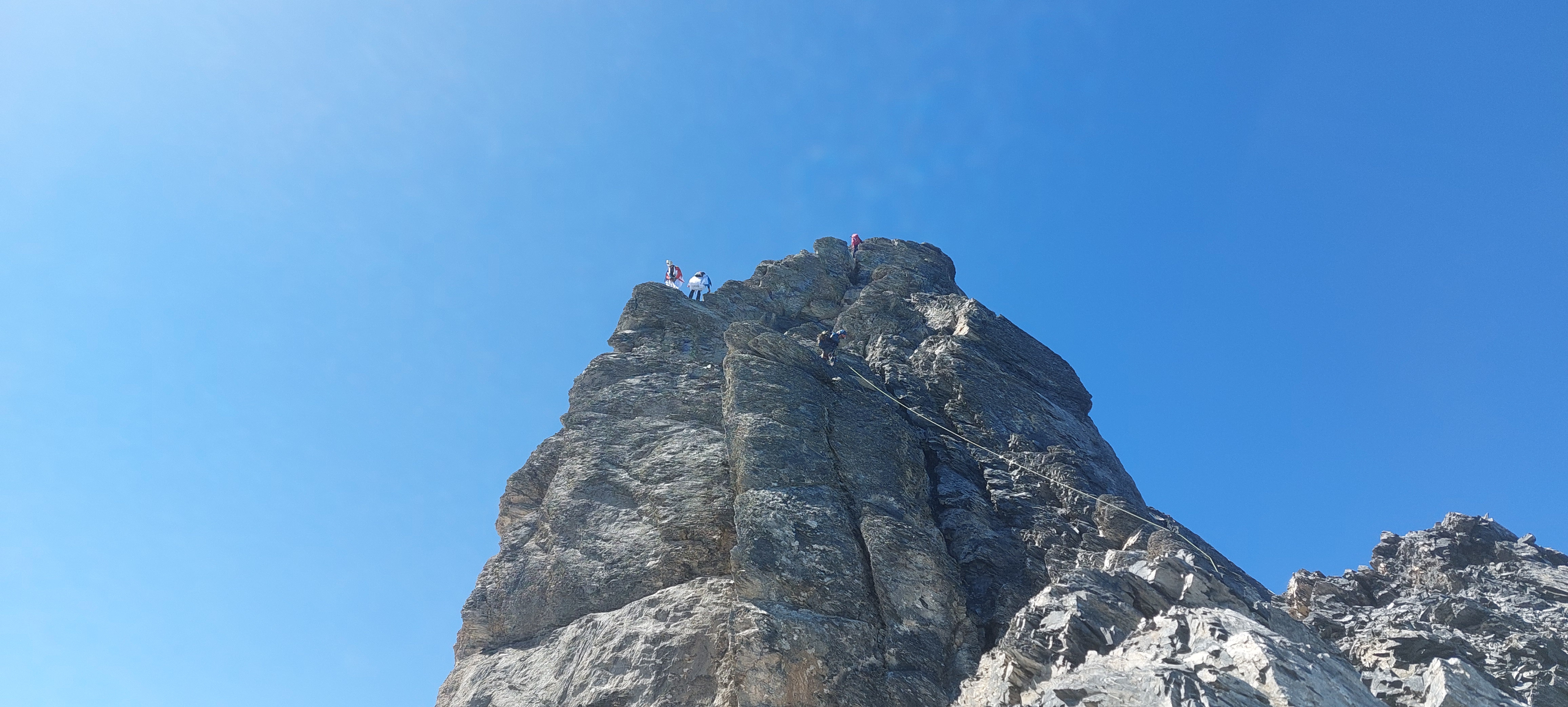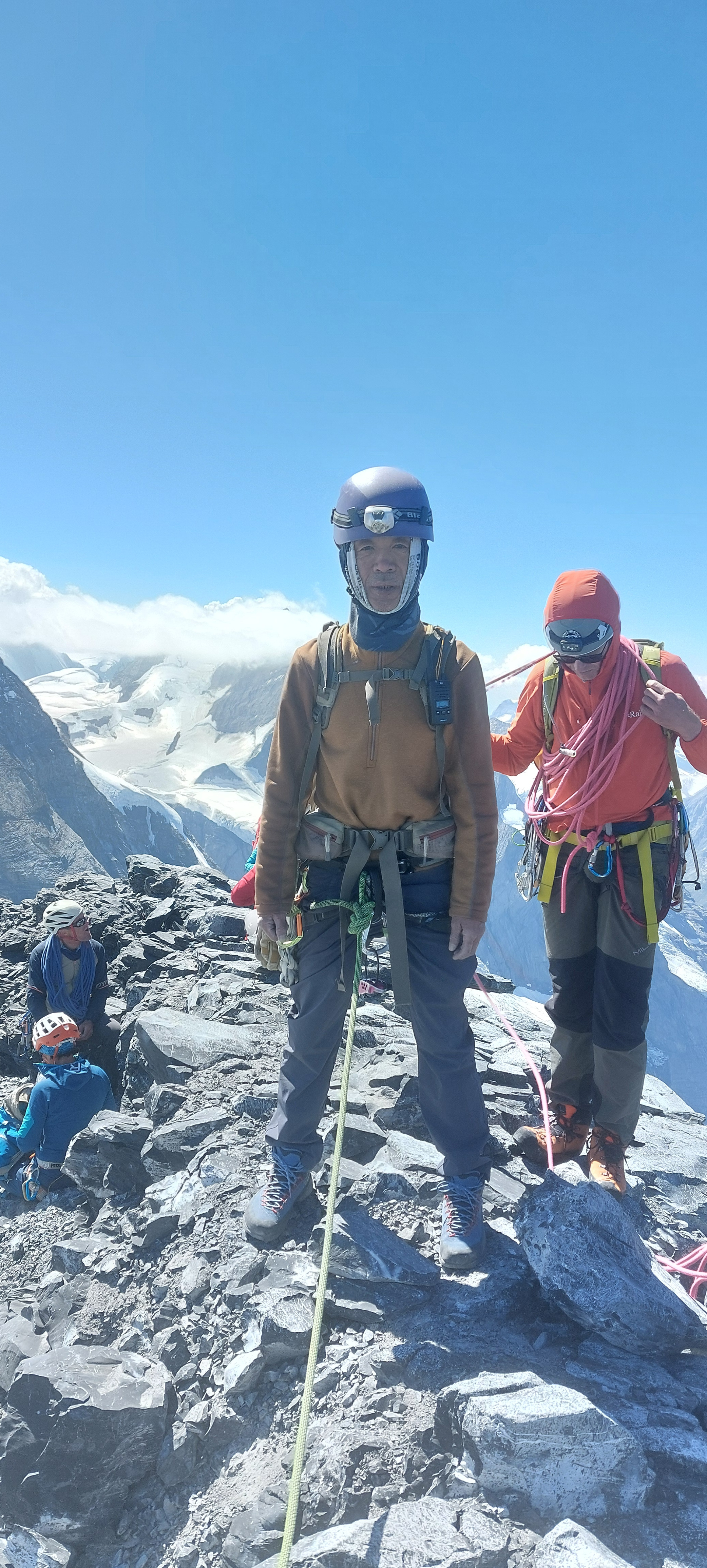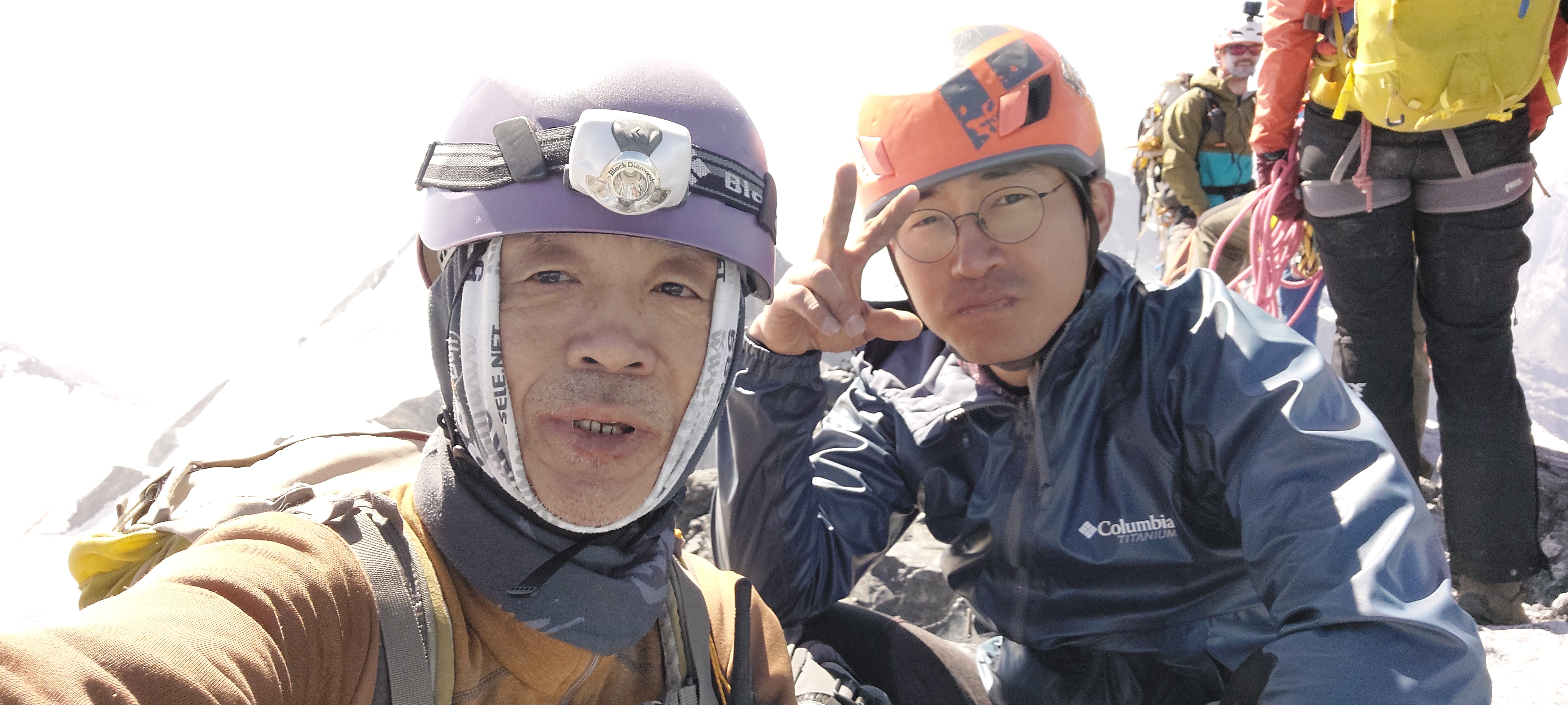 바로 앞봉에는 앞팀( 유럽 등반객들)이 올라가고 있고,