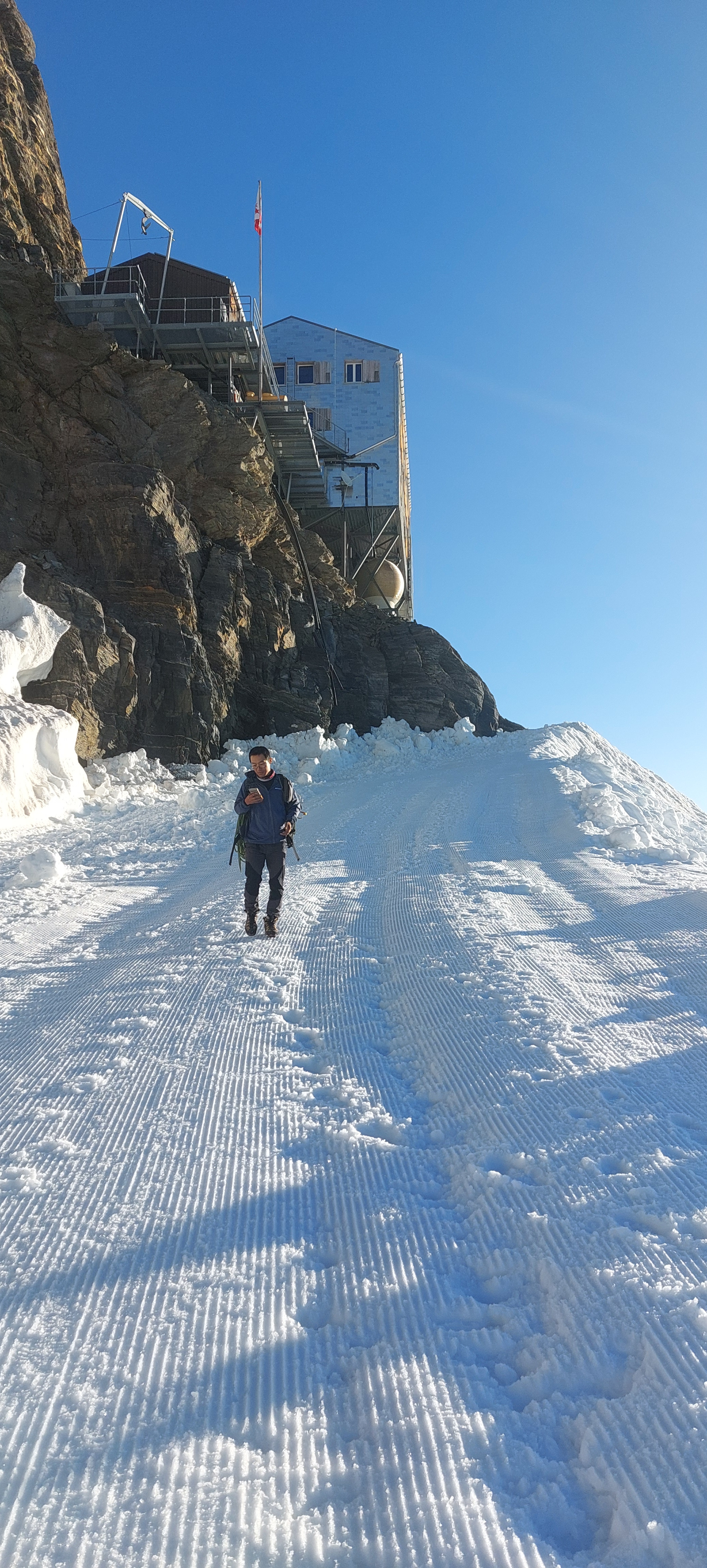 저 전망대 밑 동굴속에 융프라우요흐 기차역이 있다.(유럽에서 가장 높은 곳에 위치하고 있다는 역),