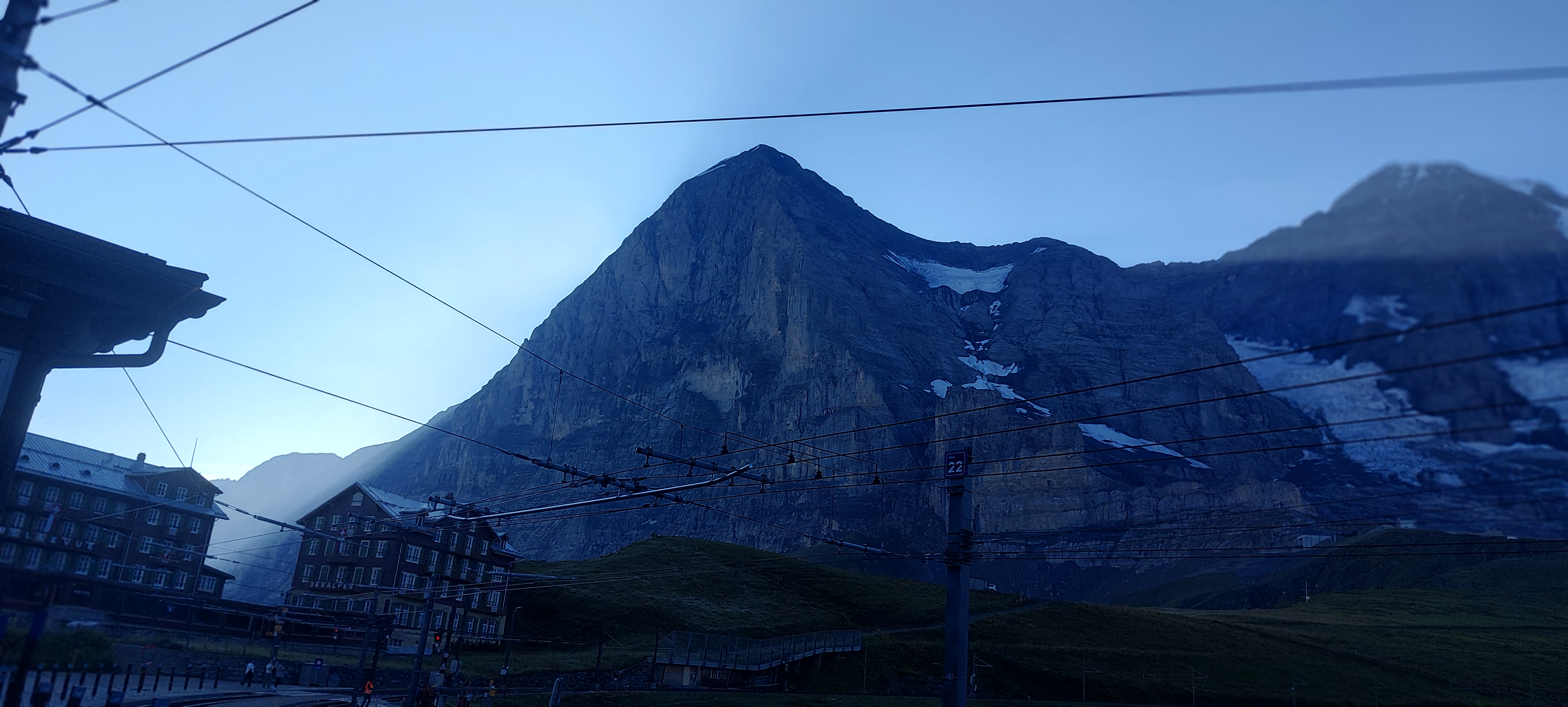 (융프라우에서 내려가는 마지막 기차 시간에는 도저히 맞출 수가 없어 묀히 산장에서 하룻밤 자야한다.)