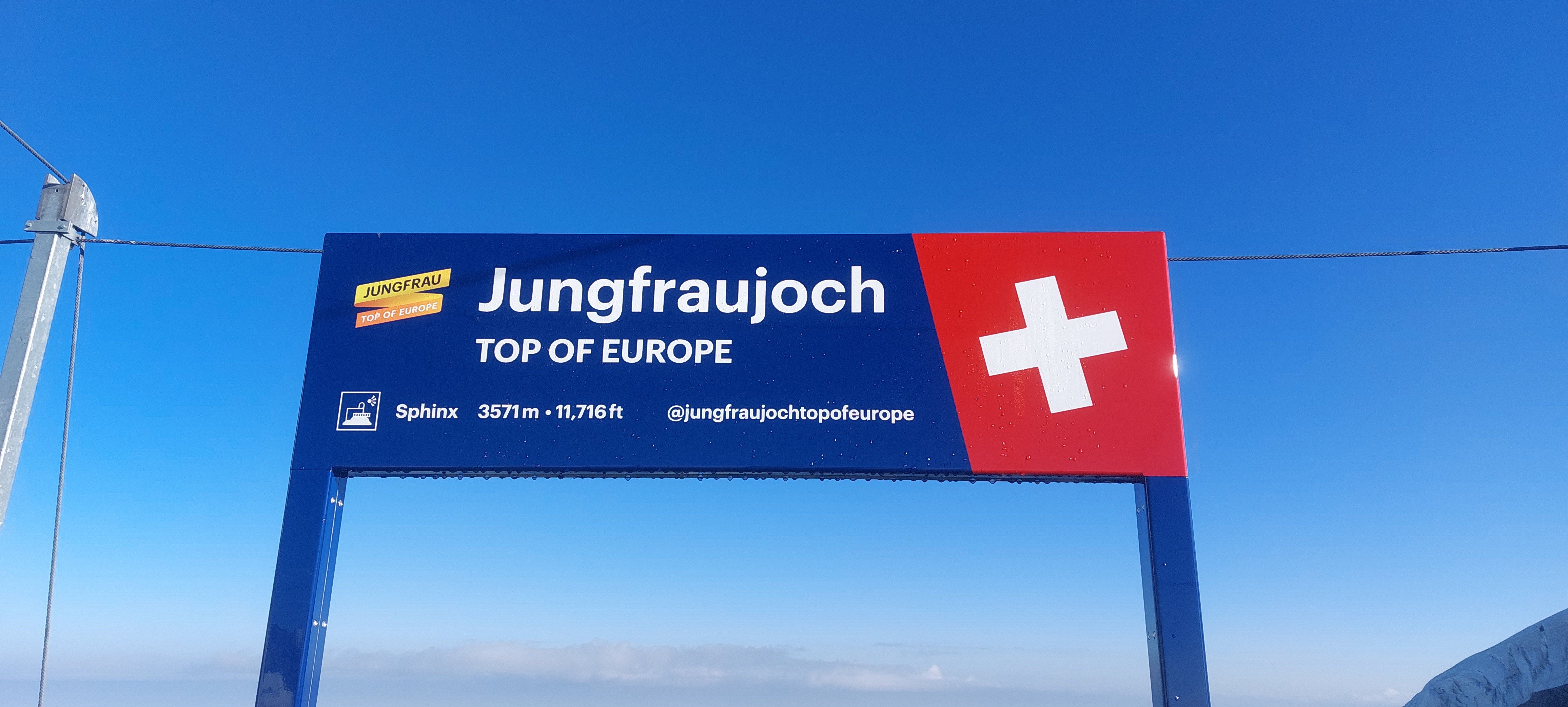 융프라우요흐 ( TOP OF EUROPE) 라고 쓰여진 안내판이 보이고....