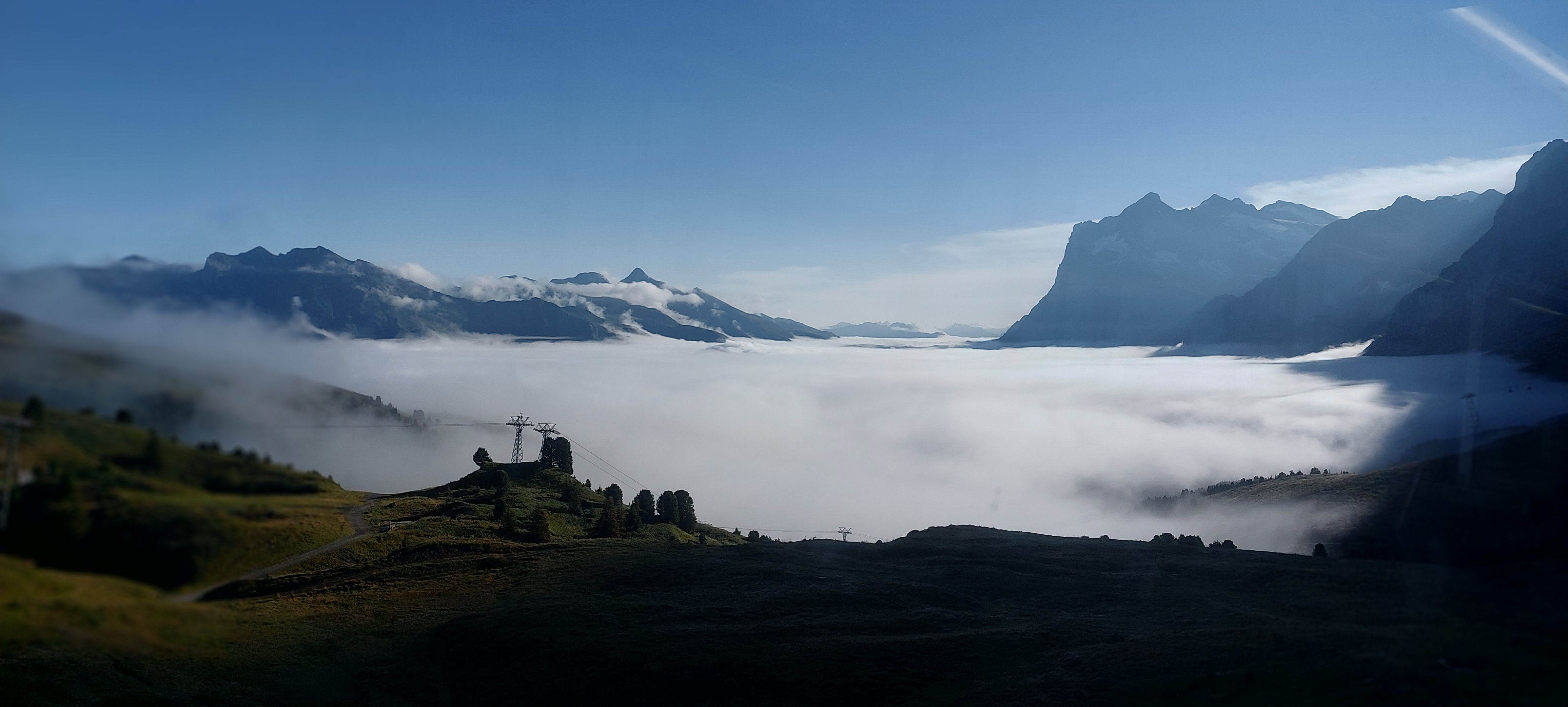 산악열차를 타고 올라가면서 바라보는 그린델발트는 전부 구름에 뒤덮혀 있다....
